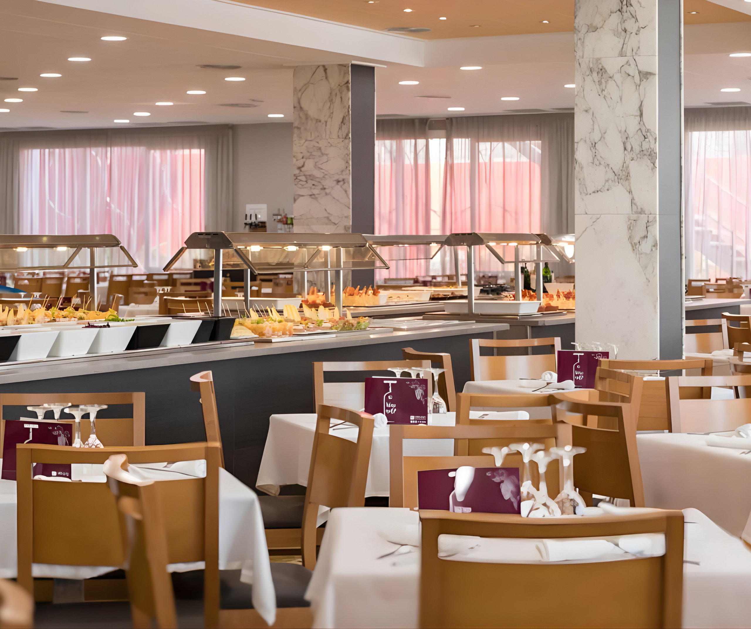 Im Restaurant erwartet euch eine abwechslungsreiche Buffetverpflegung mit internationalen und mediterranen Speisen. Das Hotel kann mit Halbpension oder All Inclusive gebucht werden. Bei Halbpension sind Frühstück und Abendessen in Buffetform enthalten. Bei All Inclusive sind zusätzlich Mittagessen sowie ausgewählte alkoholische und alkoholfreie Getränke und Snacks inklusive. Die klar geregelte Verpflegung sorgt für planbare Abläufe während eurer Abireise.