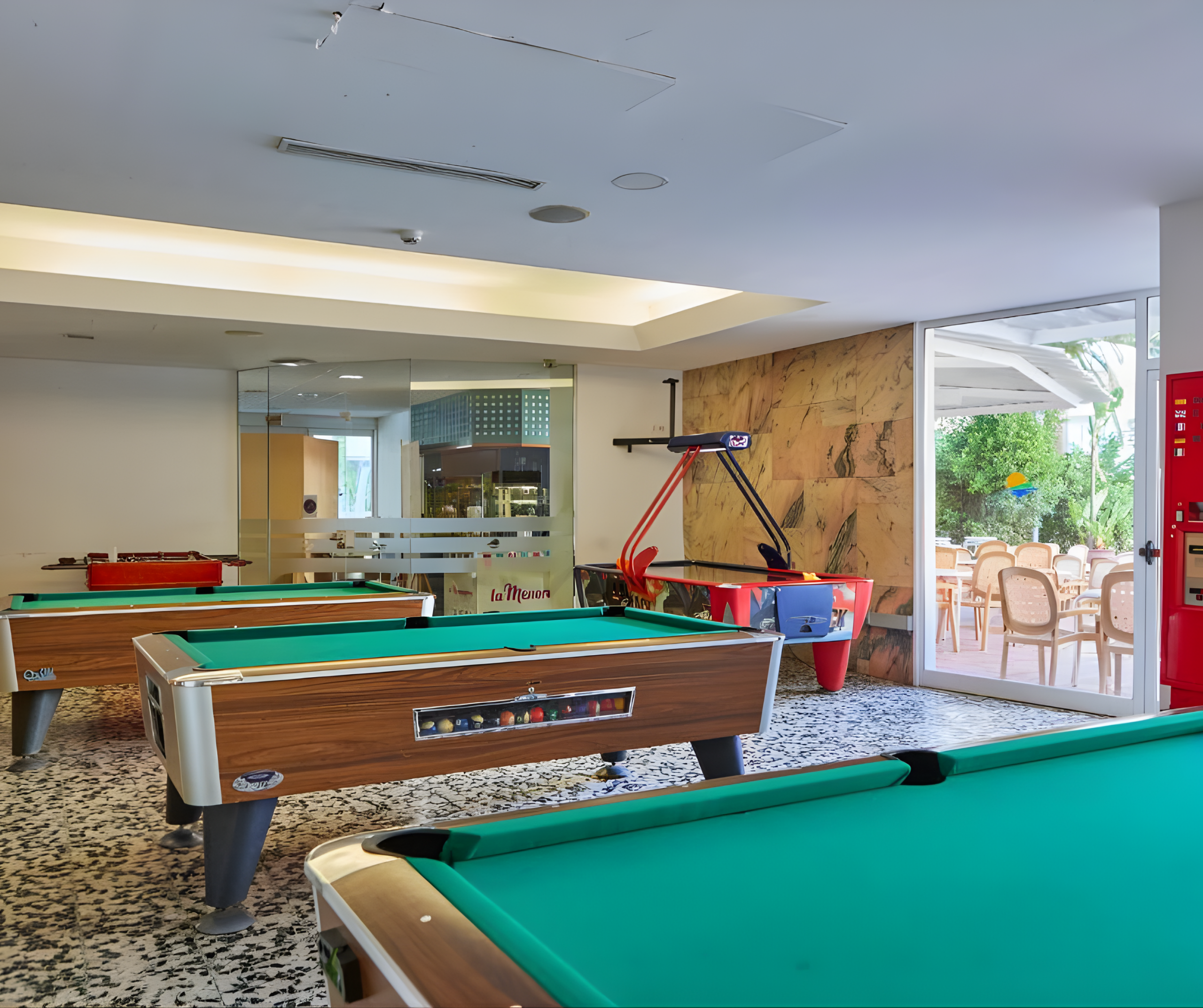 In der Lobby kann jeder Gast über kostenfreies WIFI verfügen. Wer tagsüber nicht an den Strand will, kann an den zwei Hoteleigenen Außenpools mit kostenlosen Liegen die Sonne genießen. Natürlich darf auch eine Erfrischung nicht zu kurz kommen, dafür Sorgen die drei Hotel internen Bars. Wer zu all dem noch aktiv sein möchte, kann sein Können an Billardtischen und Tischtennisplatten zeigen.